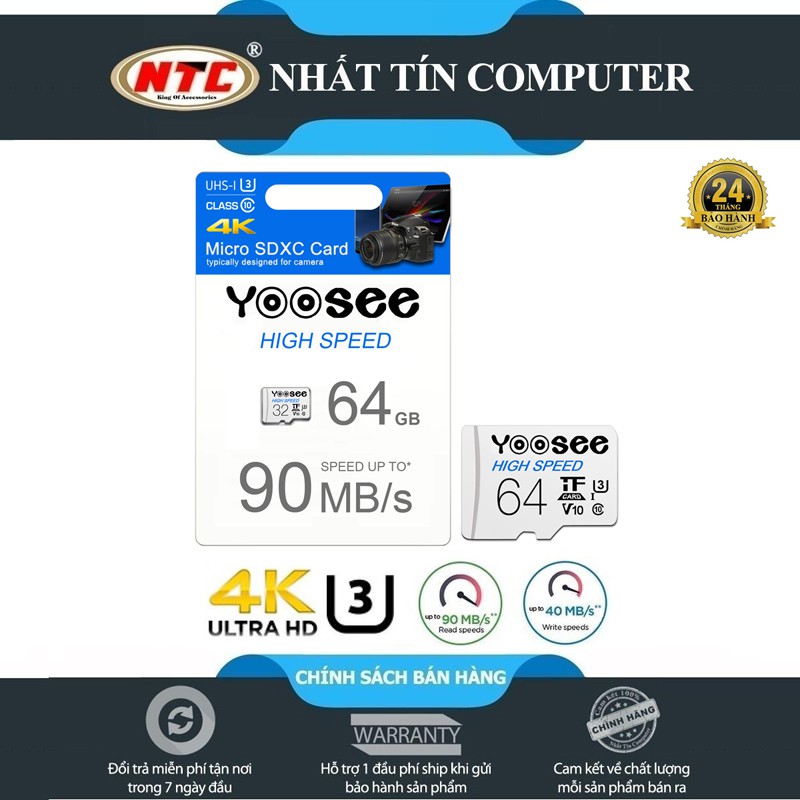 Thẻ nhớ microSDXC Yoosee High Speed 64GB UHS-I U3 4K R90MB/s W40MB/s (Trắng) - chuyên camera và điện thoạiĐặc điểm nổi bật: