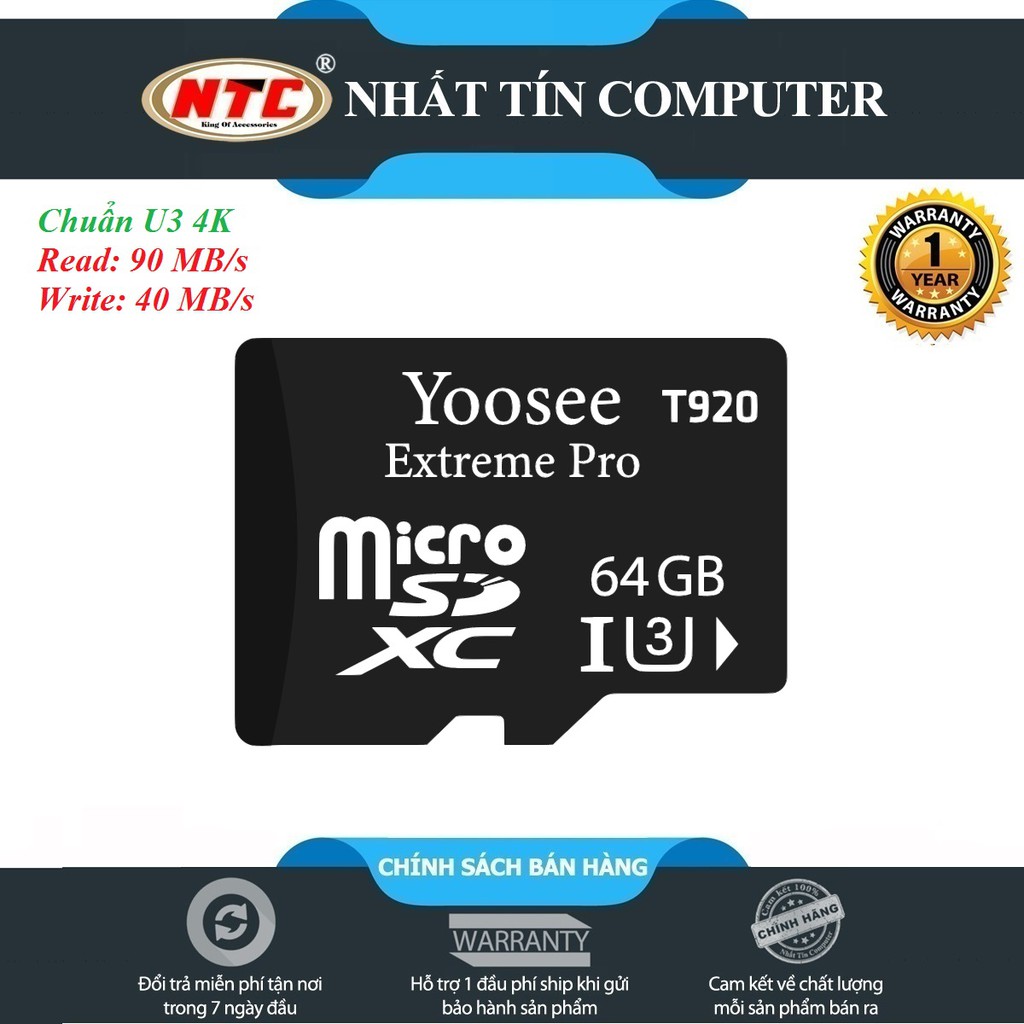 Thẻ nhớ microSDHC Yoosee Extreme Pro T920 có thể chống nước, nhiệt độ, chống sock,chống tia X-ray, giữ cho dữ liệu của bạn an toàn và được bảo hành 1 năm.