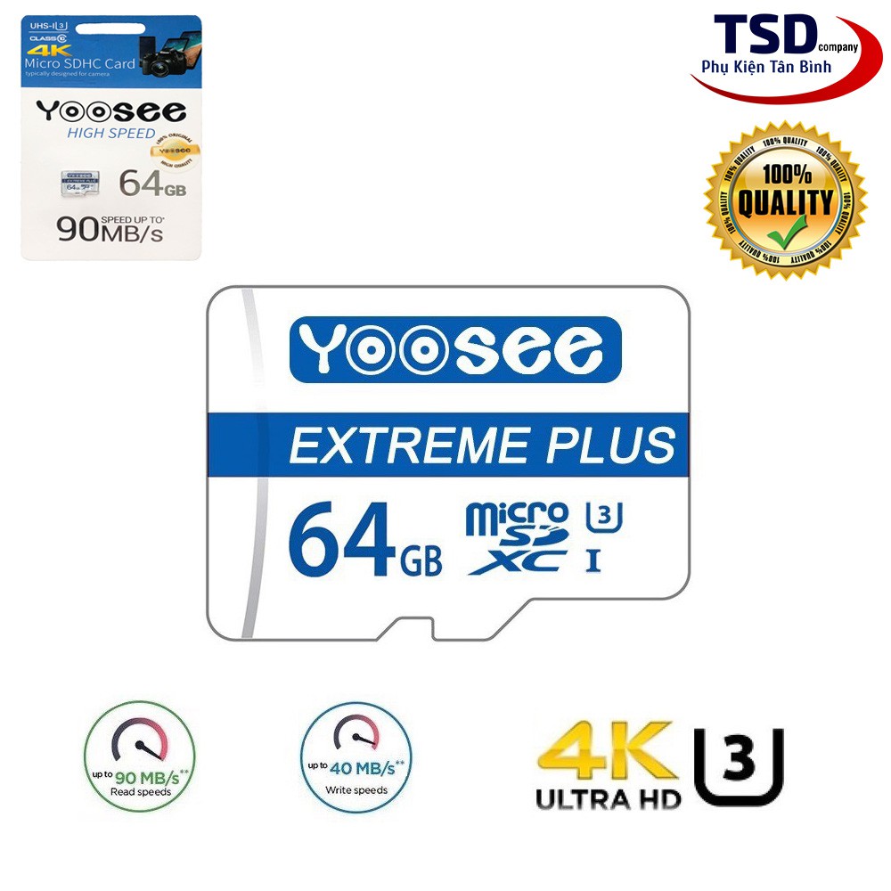 Thẻ Nhớ Microsdxc Yoosee Extreme Plus 64GB UHS-I U3 4K R90MB/S W40MB/S Chính Hãng- HÀNG BÊN SHOP CHÍNH HÃNG TRONG HỘP NGUYÊN SEAL, KHÔNG PHẢI LOẠI ĐỂ TRẦN RẺ TIỀN TRÔI NỔI TRÊN THỊ TRƯỜNG!