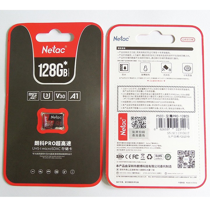 Điện Thoại & Phụ Kiện > Phụ kiện > Thẻ nhớ || Thẻ nhớ Netac 128Gb Class 10 chuyên cameraCòn hàng