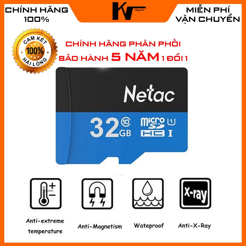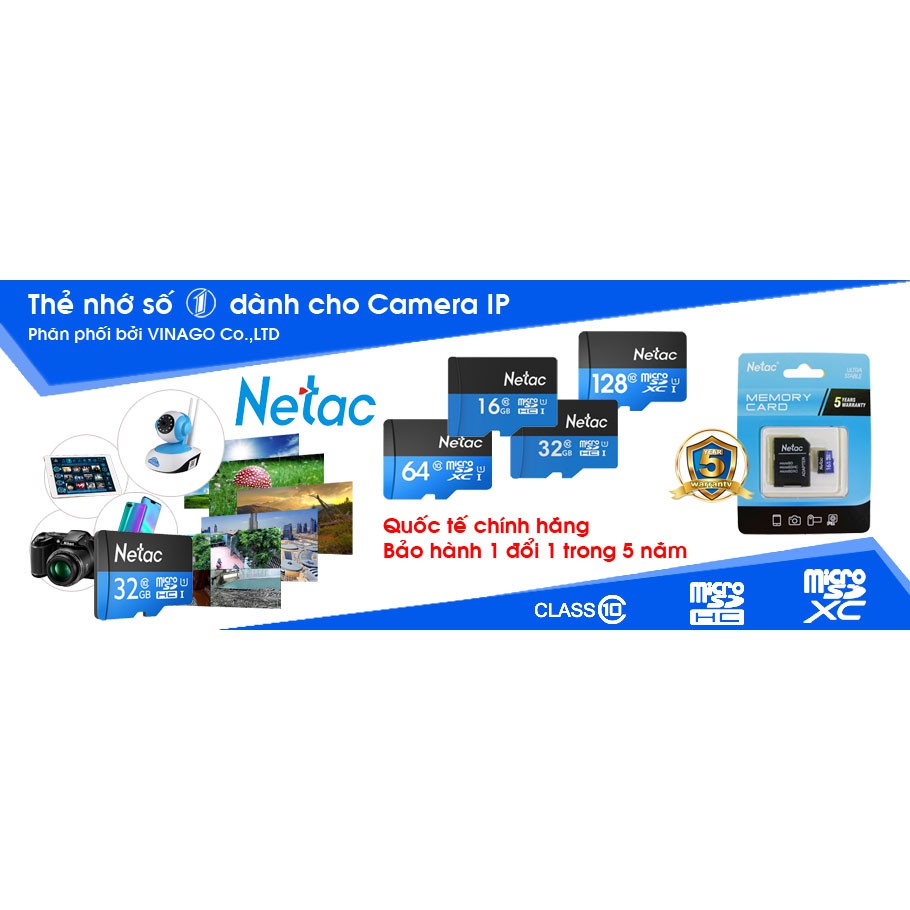 Thẻ nhớ Netac 32GB Class 10 chuyên cho camera, bảo hành 5 nămCam kết sản phẩm chính hãng 100% Vinago Phân Phối