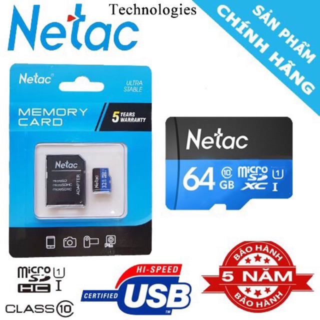 THẺ NHỚ NETAC 64GB, CHÍNH HÃNG BẢO HÀNH 5 NĂM