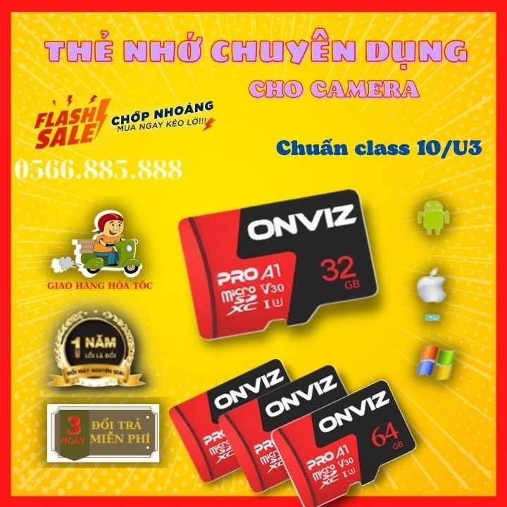 Thẻ nhớ ONVIZ Pro A1 class 10 U3 64/32 Gb chuyên dụng cho các loại camera như onvizcam, ezviz, imou...