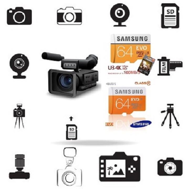 Thẻ nhớ MicroSD Samsung Evo Plus 64GB với tốc độ cực cao giúp bạn có thể quay video 4K UHD cực kì mượt mà từ điện thoại thông minh, máy tính bảng hoặc máy ảnh và tự tin rằng mọi khung hình của bạn sẽ luôn đầy đủ và sắc nét.