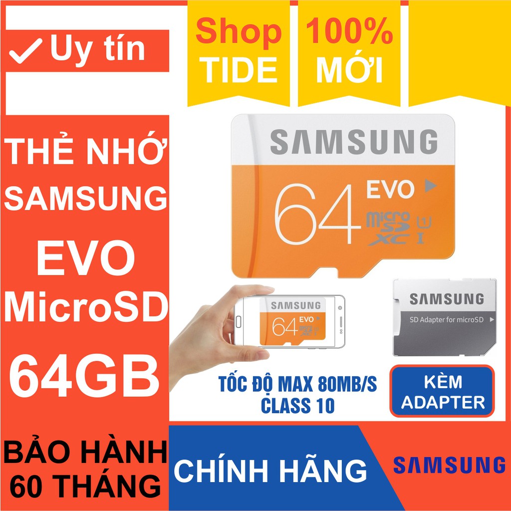 THÔNG TIN SẢN PHẨM:Thẻ nhớ Micro SD Samsung Evo plus 64GB (Kèm Adapter)