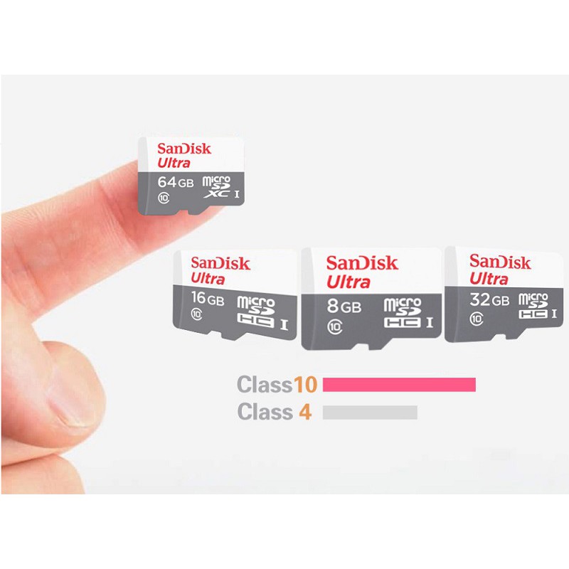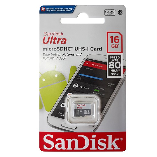 - Thẻ nhớ MicroSDHC Sandisk Ultra giúp bạn có rất nhiều không gian để lưu trữ hình ảnh và video của bạn. Và bạn cũng sẽ không cần phải quan tâm đến việc xóa bất kỳ dữ liệu nào khác khi vấn đề về không gian lưu trữ đã không còn quan trọng.