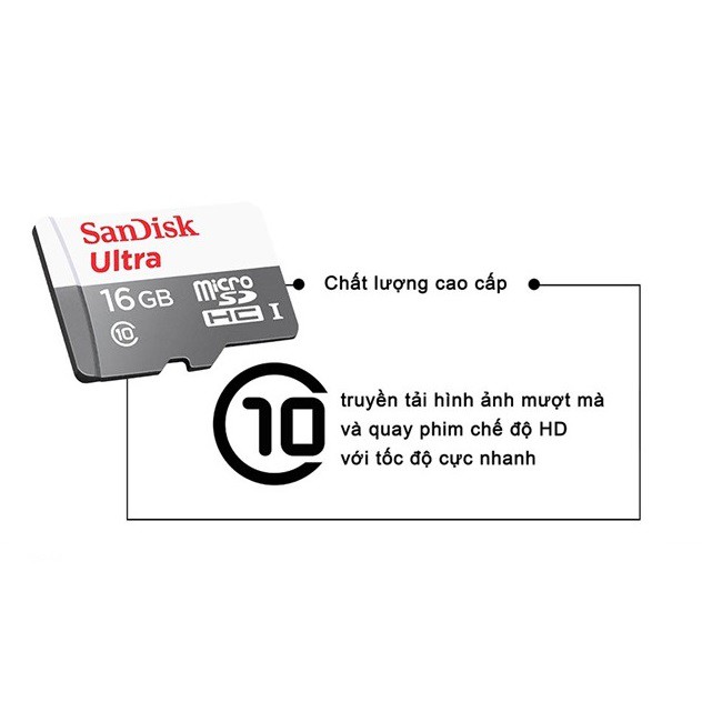 - Với tốc độ cao class 10, thẻ nhớ MicroSD Sandisk Ultra có thể nhanh chóng di chuyển tất cả hình ảnh và video của bạn từ điện thoại hoặc máy tính bảng của bạn để máy tính.