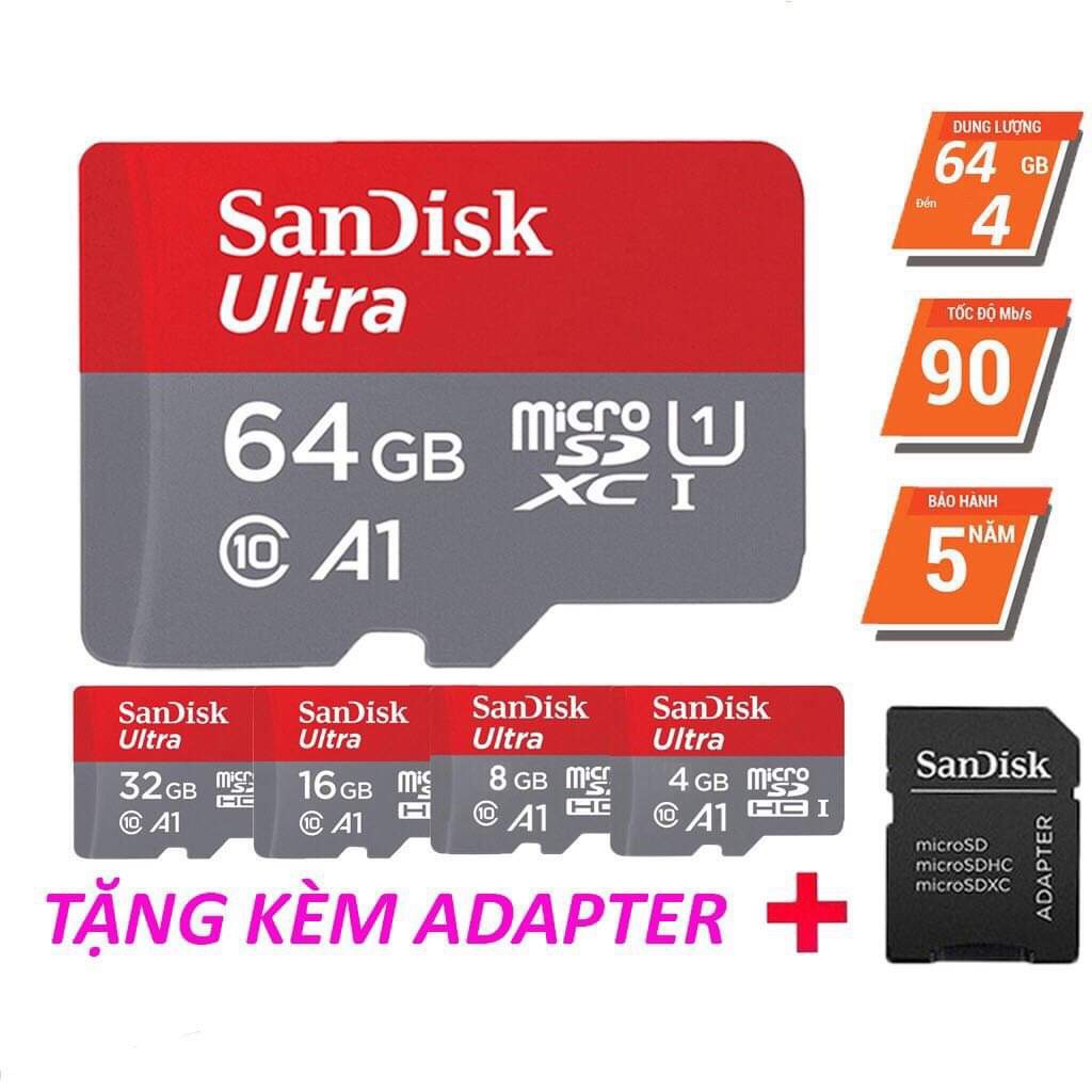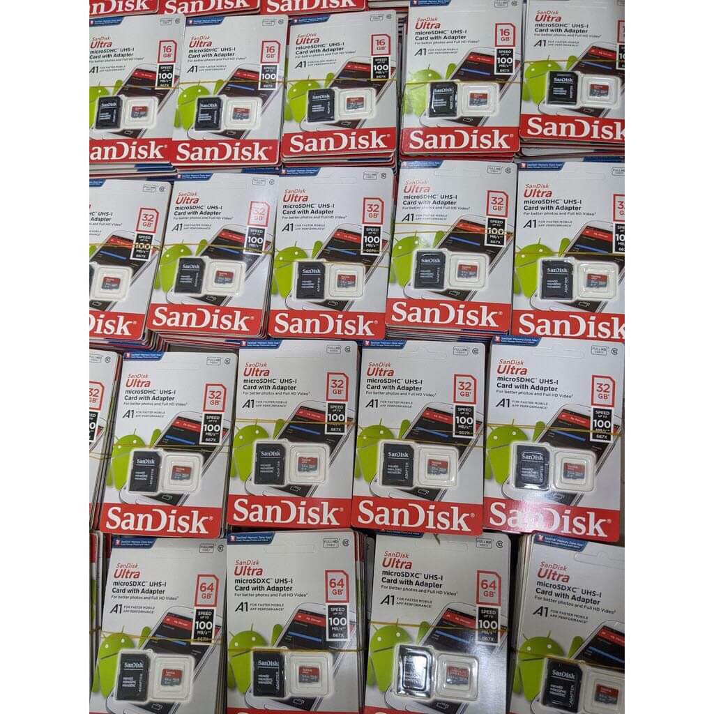 hẻ nhớ sandisk 64GB /32Gb/16GB/8GB dùng điện thoại, máy ảnh - Thẻ nhớ tốc độ cao Class 10 Ultra 667x 100MB/s -BH 5 nămLưu ý : Sản phẩm có thể rọc box để dán tem bảo hành lên thẻ, các thẻ nhớ được bảo hành 12 tháng dựa vào tem bảo hành trên thẻ. Sản phẩm có kèm hộp nhựa. Thẻ nhớ được dùng kèm với Adapter SD cho những tác vụ lưu trữ trên máy ảnh chuyên nghiệp hoặc Laptop PC thiết bị có hỗ trợ cổng SD. Nếu chỉ dùng cho điện thoại, camera ip hoặc máy nghe nhạc...thì không cần kèm Adapter SD.