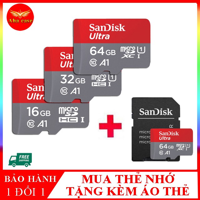 - Thẻ nhớ Micro 4GB, 8GB,16GB, 32GB, 64GB, 128GB Sandisk Ultra giúp bạn có rất nhiều không gian để lưu trữ hình ảnh và video của bạn. Và bạn cũng sẽ không cần phải quan tâm đến việc xóa bất kỳ dữ liệu nào khác khi vấn đề về không gian lưu trữ đã không còn quan trọng.