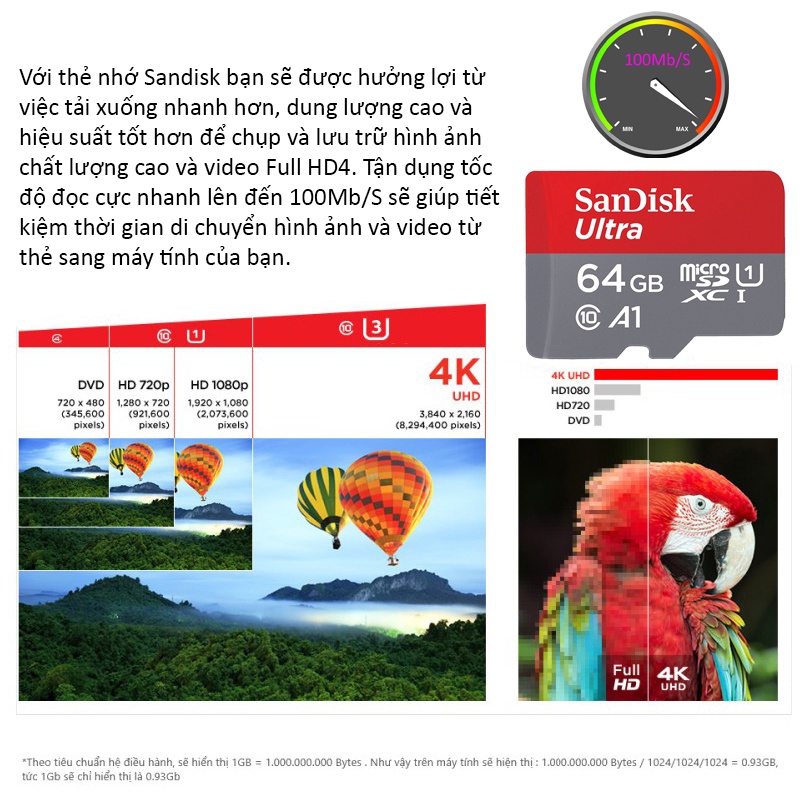 - Dung lượng Thẻ nhớ 64Gb/32Gb/16Gb/8GB/4GB