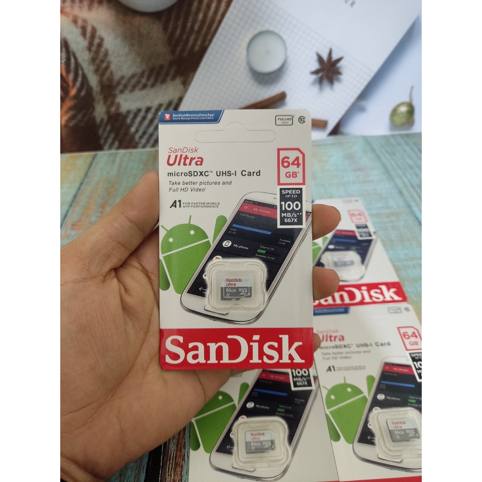 Thẻ Nhớ 64GB Micro SDHC Ultra A1 Với tốc độ đọc lên đến 100MB/s, thẻ nhớ MicroSD SanDisk Ultra A1 cho phép bạn chuyển hình ảnh độ phân giải cao và video Full HD sang máy tính của bạn mà không cần phải chờ đợi lâu.