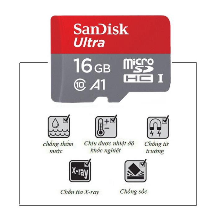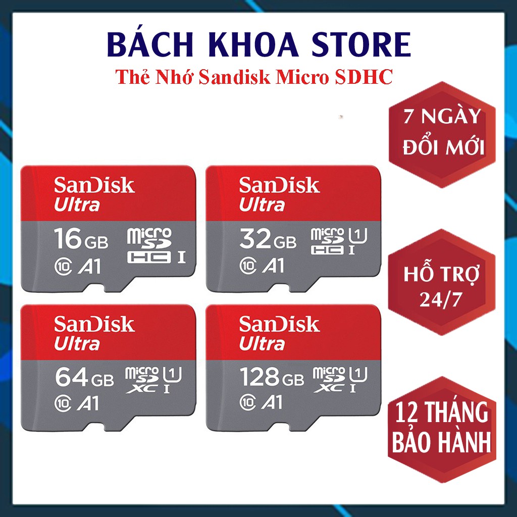 Thẻ Nhớ SanDisk MicroSDHC 64GB/32GB/16GB/8GB/4GB Ultra Tốc Độ Cực Nhanh 98 MB/SLưu ý : Sản phẩm có thể rọc box để dán tem bảo hành lên thẻ, các thẻ nhớ được bảo hành 12 tháng dựa vào tem bảo hành trên thẻ. Sản phẩm có kèm hộp nhựa. Thẻ nhớ được dùng kèm với Adapter SD cho những tác vụ lưu trữ trên máy ảnh chuyên nghiệp hoặc Laptop PC thiết bị có hỗ trợ cổng SD. Nếu chỉ dùng cho điện thoại, camera ip hoặc máy nghe nhạc...thì không cần kèm Adapter SD.