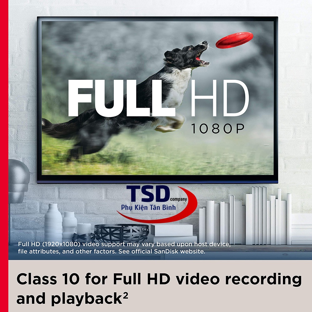 Với tốc độ đạt chuẩn Class 10, thẻ nhớ MicroSD SanDisk Ultra A1 cho phép bạn quay phim và phát lại video Full HD mà không mất bất kì khung hình nào. Mở rộng dung lượng lưu trữ cục lớn lên đến 16GB, bạn có thể lưu trữ lên đến 24h video Full HD trước khi bạn phải chuyển các tập tin vào máy tính của bạn.