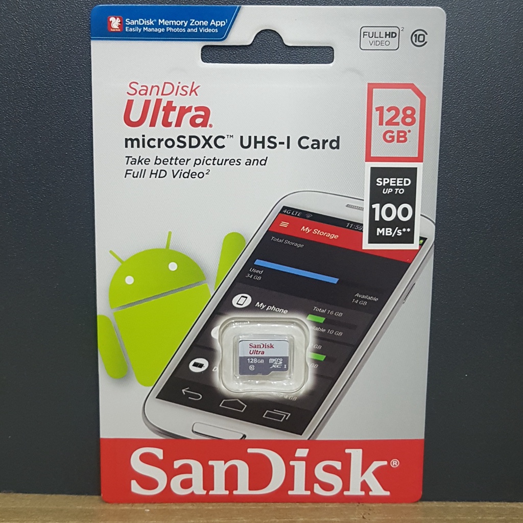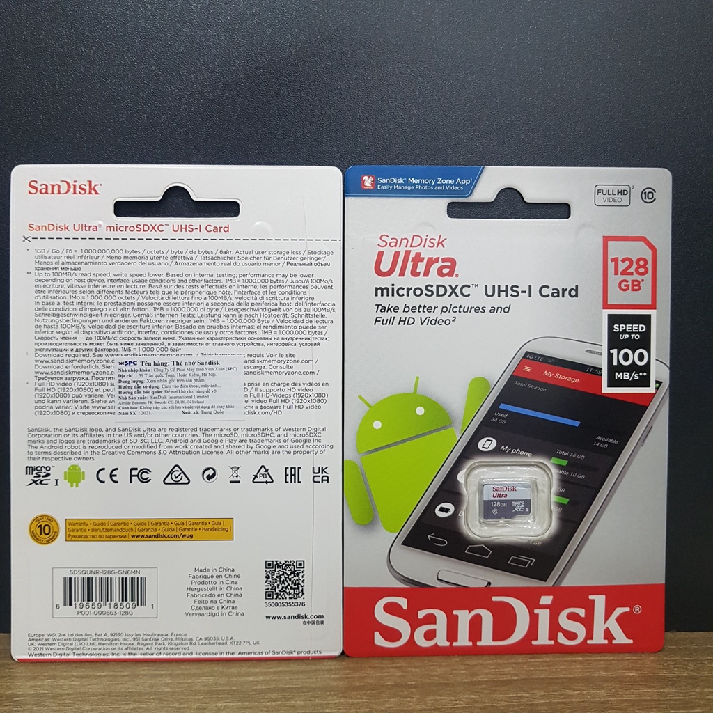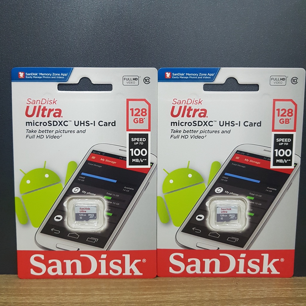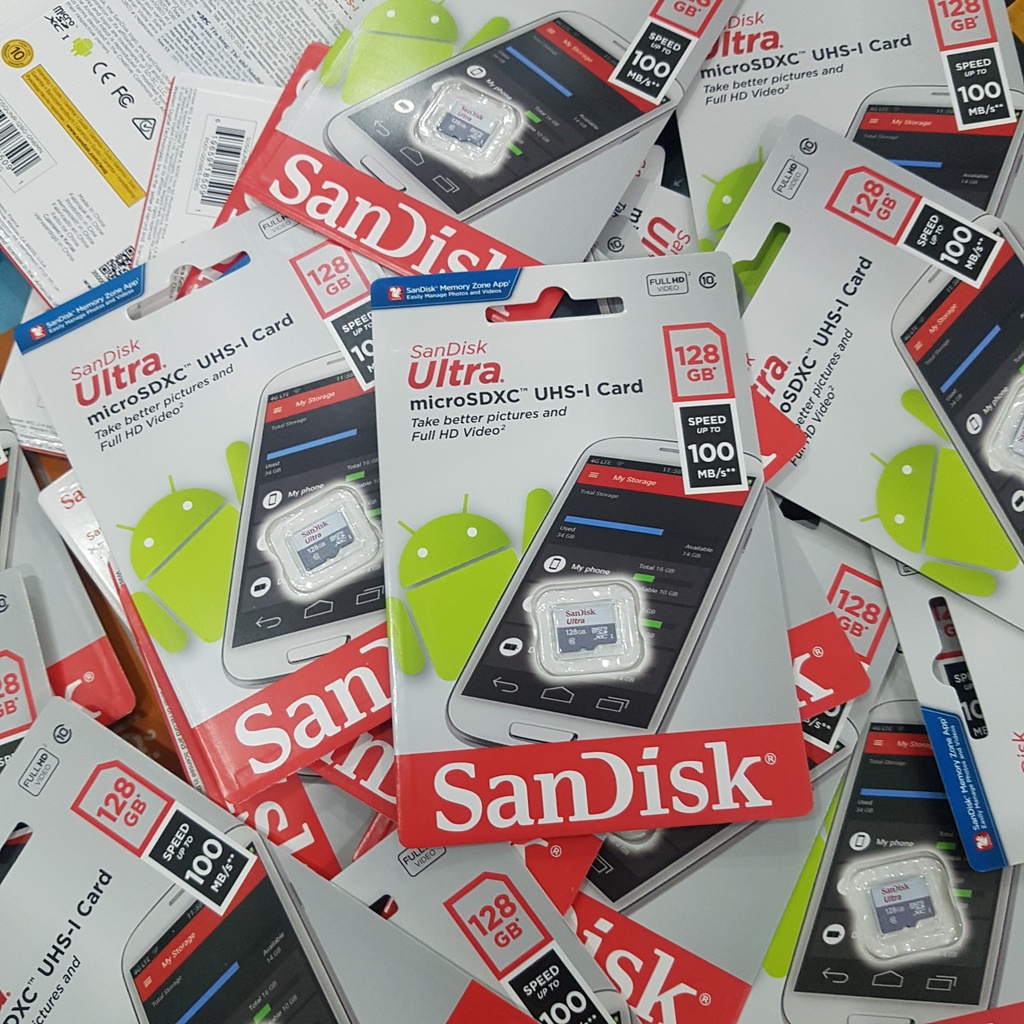 Điện Thoại & Phụ Kiện > Phụ kiện > Thẻ nhớ || Thẻ nhớ SanDisk Ultra Class 10 128GB 100MB/s - Dùng cho camera, máy ảnh, điện thoại - Hàng chính hãngCòn hàng