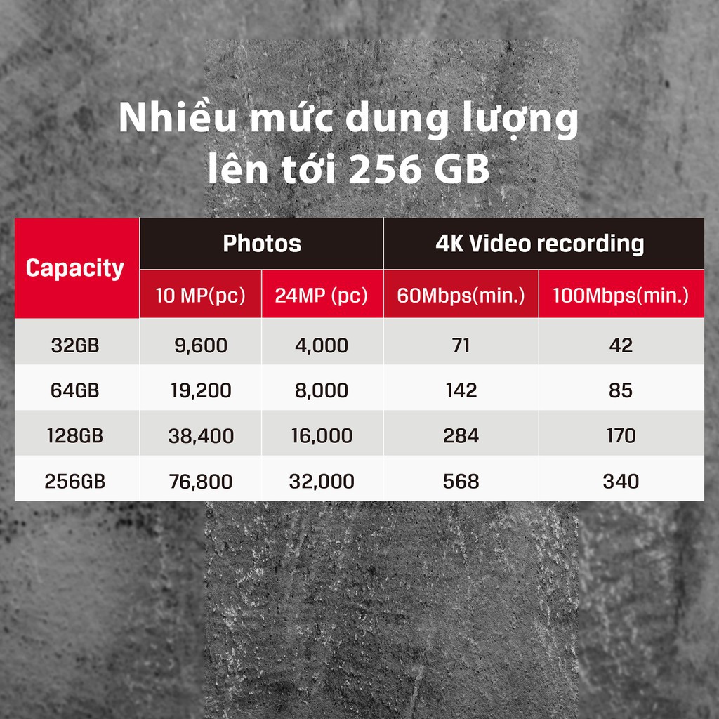 Dung lượng2 32GB, 64GB, 128GB, 256GB
