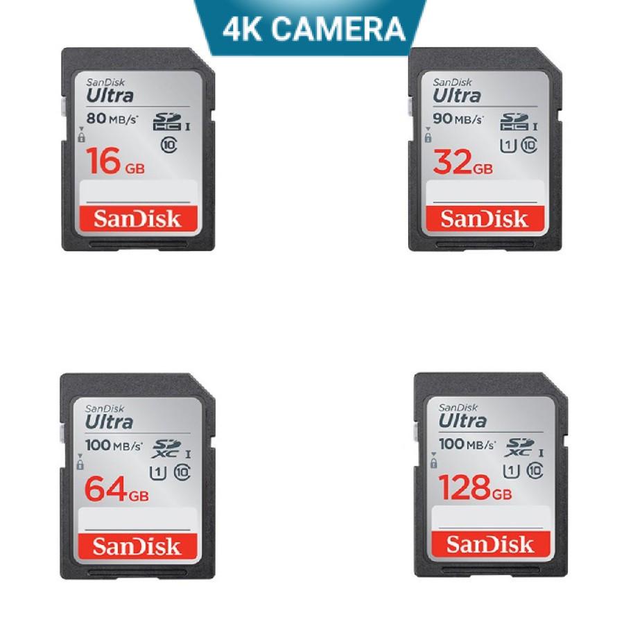 Giới thiệu Thẻ nhớ SD Sandisk 16G 32G 64G Ultra Class 10 và Extreme Pro tốc độ cao 4K cho máy ảnh máy quay