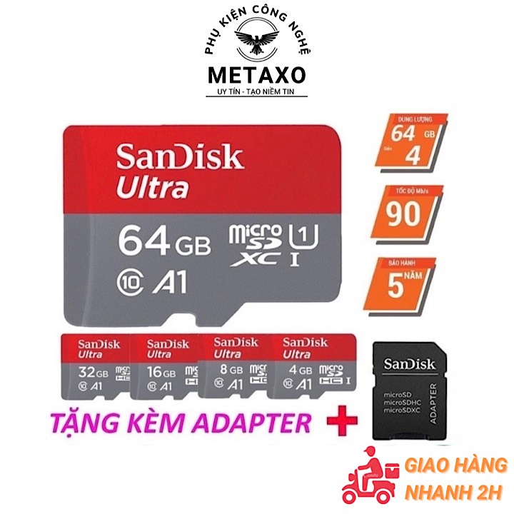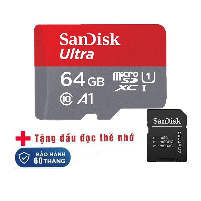 Thẻ nhớ sandisk 64GB /32Gb/16GB/8GB dùng điện thoại, máy ảnh - Thẻ nhớ tốc độ cao Class 10 Ultra 667x 100MB/s -BH 5 nămLưu ý : Sản phẩm có thể rọc box để dán tem bảo hành lên thẻ, các thẻ nhớ được bảo hành 12 tháng dựa vào tem bảo hành trên thẻ. Sản phẩm có kèm hộp nhựa. Thẻ nhớ được dùng kèm với Adapter SD cho những tác vụ lưu trữ trên máy ảnh chuyên nghiệp hoặc Laptop PC thiết bị có hỗ trợ cổng SD. Nếu chỉ dùng cho điện thoại, camera ip hoặc máy nghe nhạc...thì không cần kèm Adapter SD.
