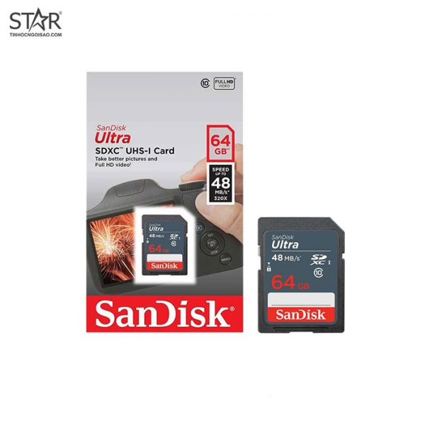 Điện Thoại & Phụ Kiện > Phụ kiện > Thẻ nhớ || Thẻ nhớ SD Sandisk Ultra 64G Class 10 (SDSDUNB-064G-GN3IN)Còn hàng