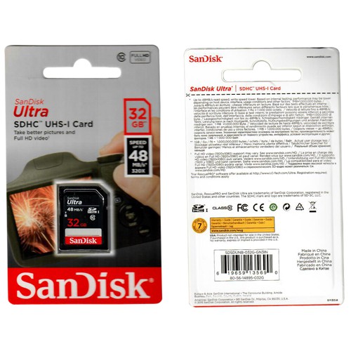 Với tốc độ cao class 10, thẻ nhớ SD Sandisk Ultra có thể nhanh chóng di chuyển tất cả hình ảnh và video của bạn từ máy ảnh hoặc máy quay của bạn để máy tính.