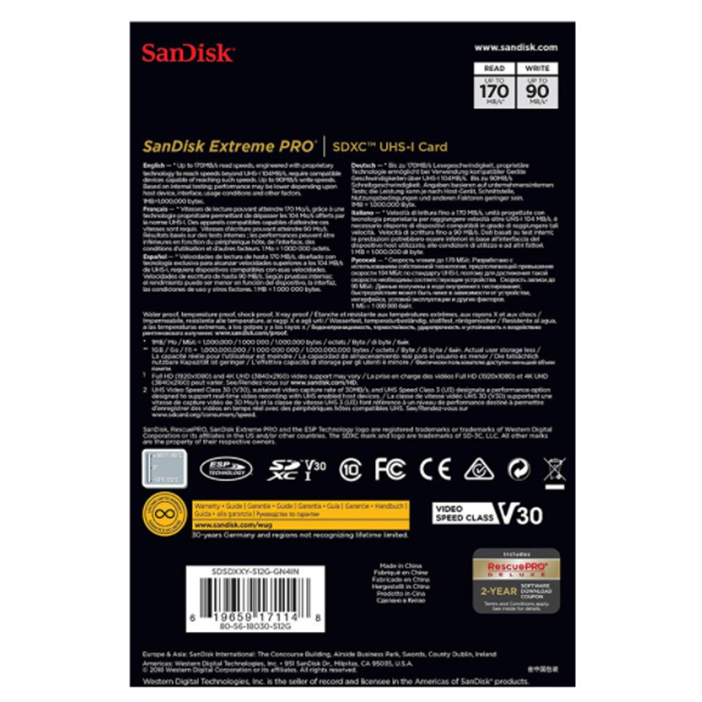 - Tốc độ là thứ bạn cần nhưng đôi khi là chưa đủ. Thẻ SanDisk Extreme PRO ® SD ™ UHS-I với tốc độ ghi 90MB/s và băng thông U3 mang lại hiệu suất tuyệt vời để quay video 4K UHD tuyệt đẹp, không bị gián đoạn 1 .