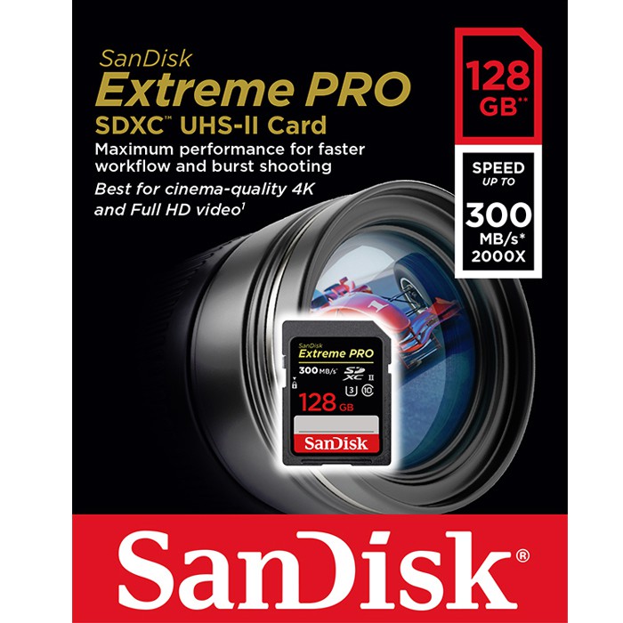 Điện Thoại & Phụ Kiện > Phụ kiện > Thẻ nhớ || Thẻ nhớ SDXC SanDisk Extreme PRO UHS-II U3 2000x 128GB 300MB/s (SDSDXPK-128G-ANCIN)Còn hàng