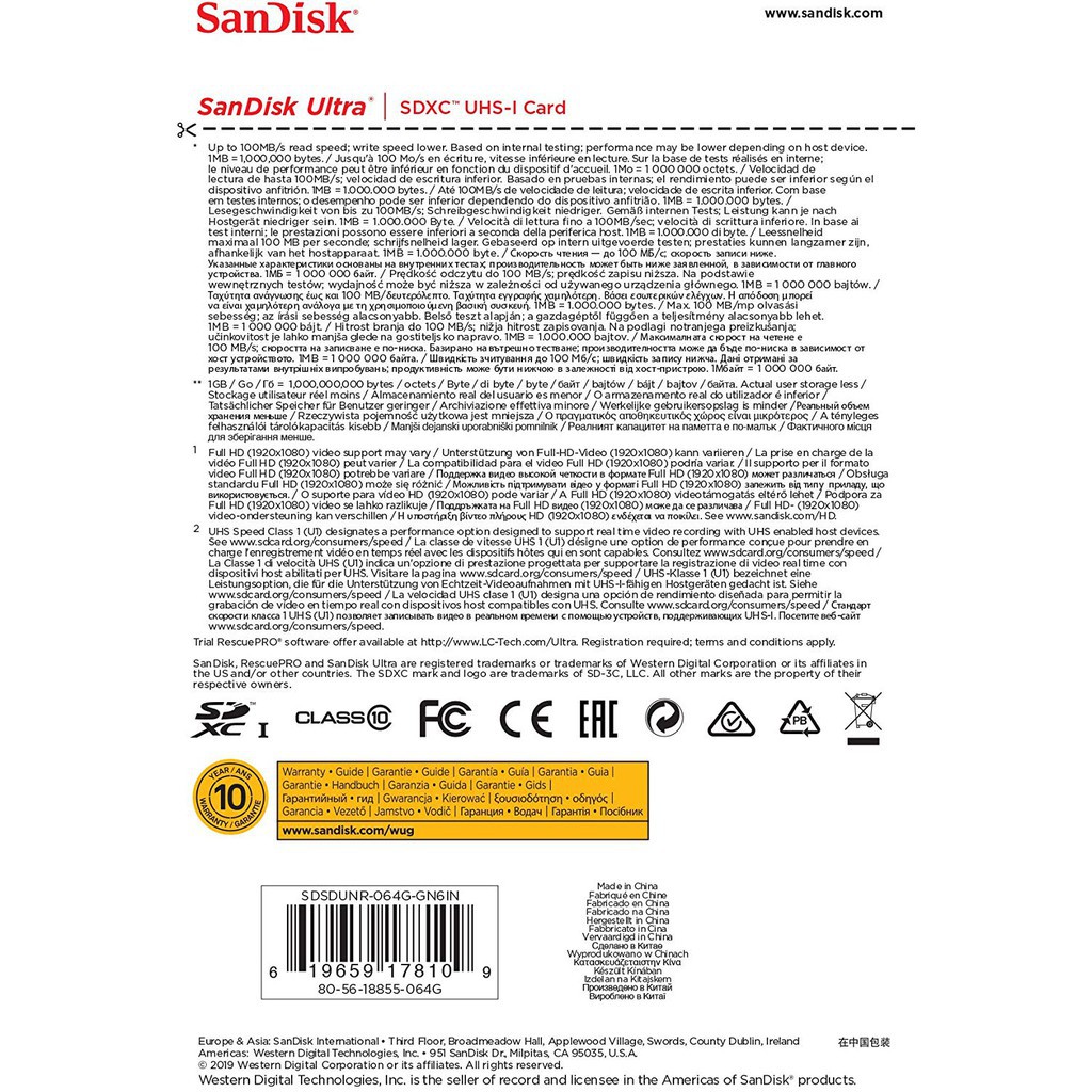 Giới thiệu Thẻ nhớ SDXC SanDisk Ultra 64GB 100MB Class 10 - Bảo hành 5 năm