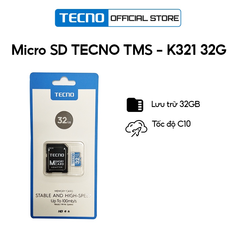 Thẻ nhớ SD CARD TECNO:thẻ tăng cường dung lượng, tăng khả năng lưu trữ cho bộ nhớ thiết bị: