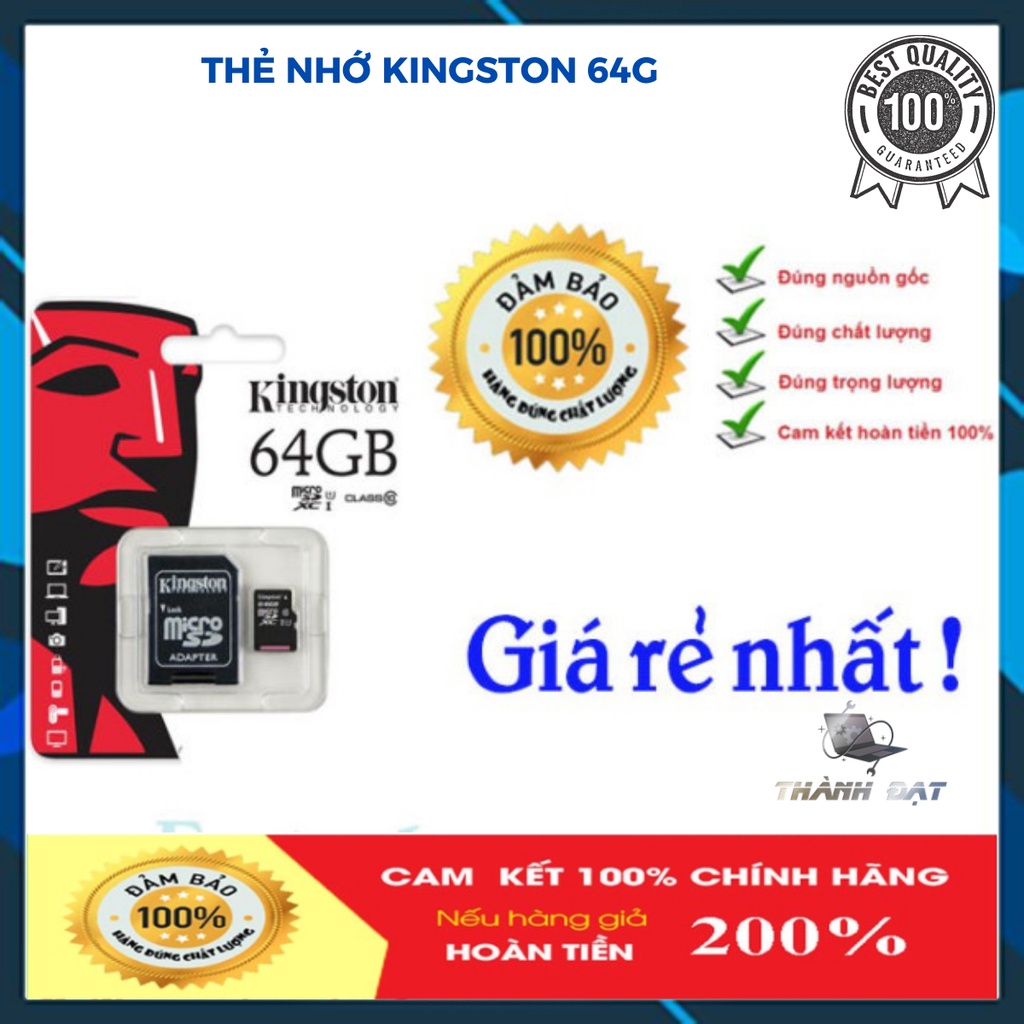 Điện Thoại & Phụ Kiện > Phụ kiện > Thẻ nhớ || Thẻ Nhớ ,Thẻ nhớ micro SD Kingston Class10 64GB - Chính hãng FPTCòn hàng