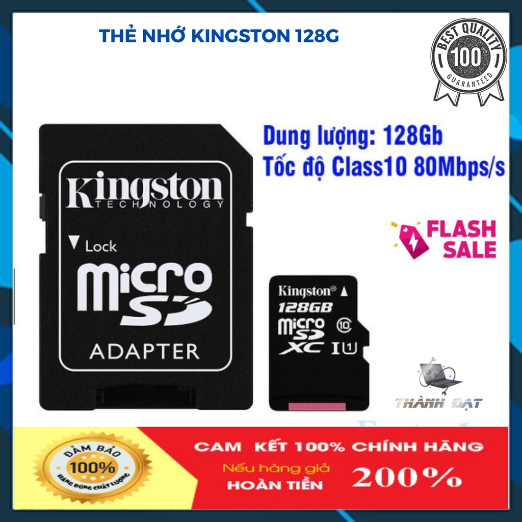 - Mang đến chất lượng hình ảnh và Video chất lượng cực cao: Thẻ nhớ MicroSDHC 128Gb Kingston với tốc độ cao, cho phép bạn chụp ảnh chất lượng cao và quay video Full HD rất mượt mà.