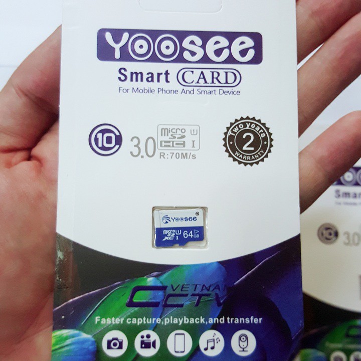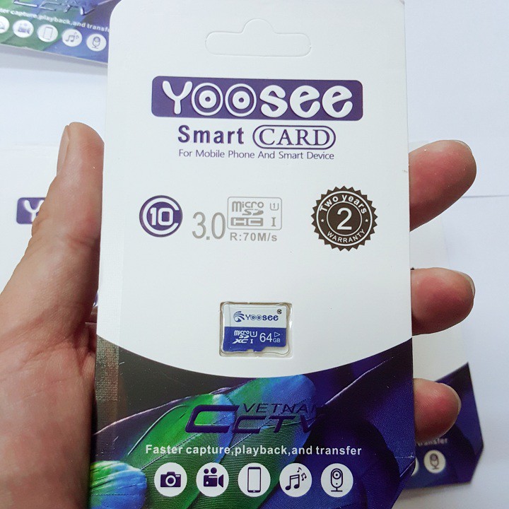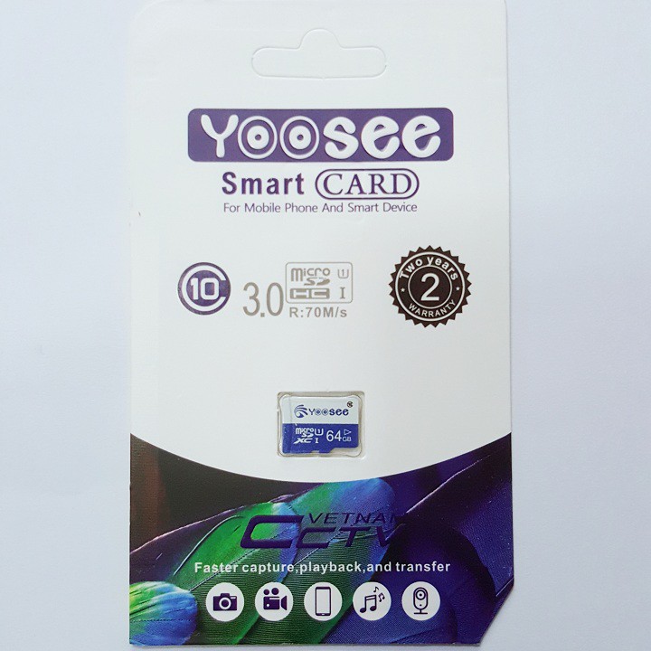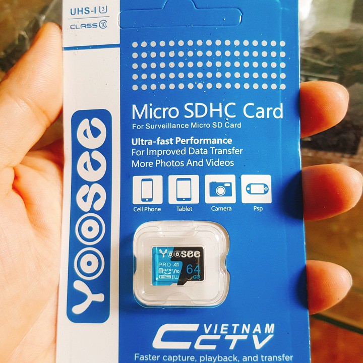 Điện Thoại & Phụ Kiện > Phụ kiện > Thẻ nhớ || Thẻ nhớ yoosee 64GB Pro A1 Micro SDHC U3 class 10 - Tốc độ cao 100Mb/s - Tương thích mọi thiết bịCòn hàng