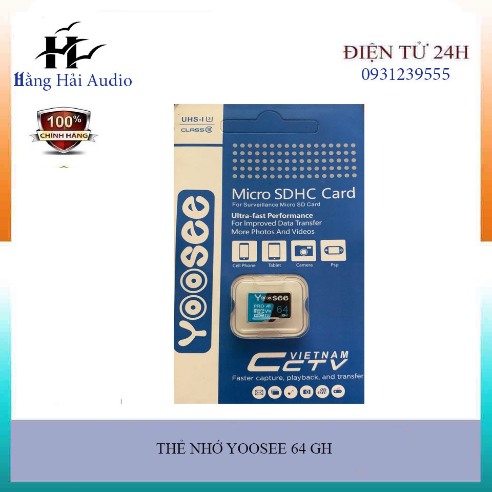 - Dung lượng thẻ nhớ Yoosee 64GB, có khả năng ghi dữ liệu liên tục từ 12 đến 14 ngày đối với các dòng camera giám sát, camera IP...