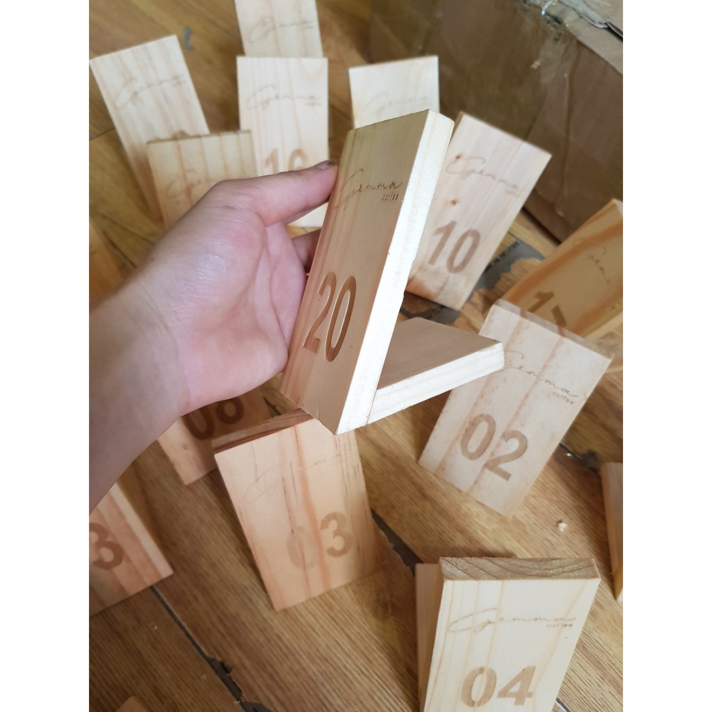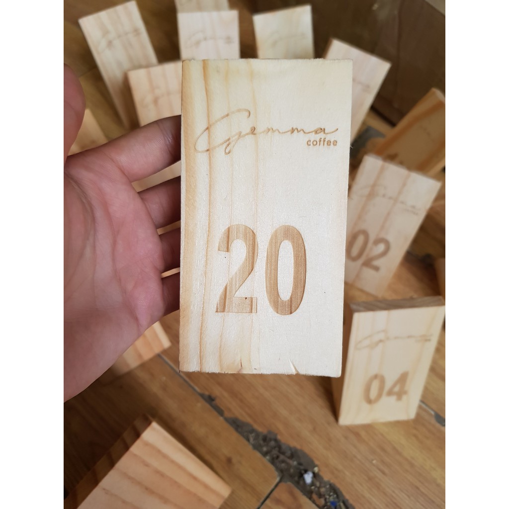 Nhà cửa & Đời sống > Nội thất > Bàn || Thẻ số để bàn khắc logo bằng gỗ dùng cho quán coffee, nhà hàng màu sắc theo yêu cầuCòn hàng