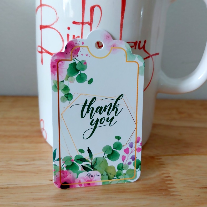 Thẻ treo cám ơn, mác giấy, Tag giấy thanks you (100 cái) giấy dày đẹp, có UV in nổi họa tiết- Chất liệu: Giấy Ivory trắng, dày, cứng.