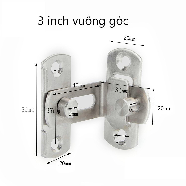 Nhà cửa & Đời sống > Bảo hộ gia đình > Khóa, ổ khóa || Then cửa, chốt khóa cửa bằng thép không gỉ K02 mẫu vuông góc 90 độ. Full ốc vítCòn hàng