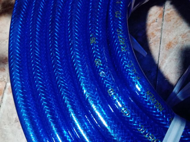 Ống nước dẻo lưới màu xanh, dây dày3 lớp, lớp giữa là lưới thép dẻo được đan dày., giúp chống co giãn và gãy dập ống.