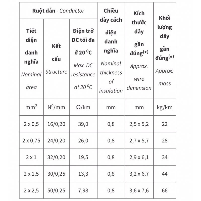 1. Dây đôi Vcmd 2x 0.5mm (2x16)