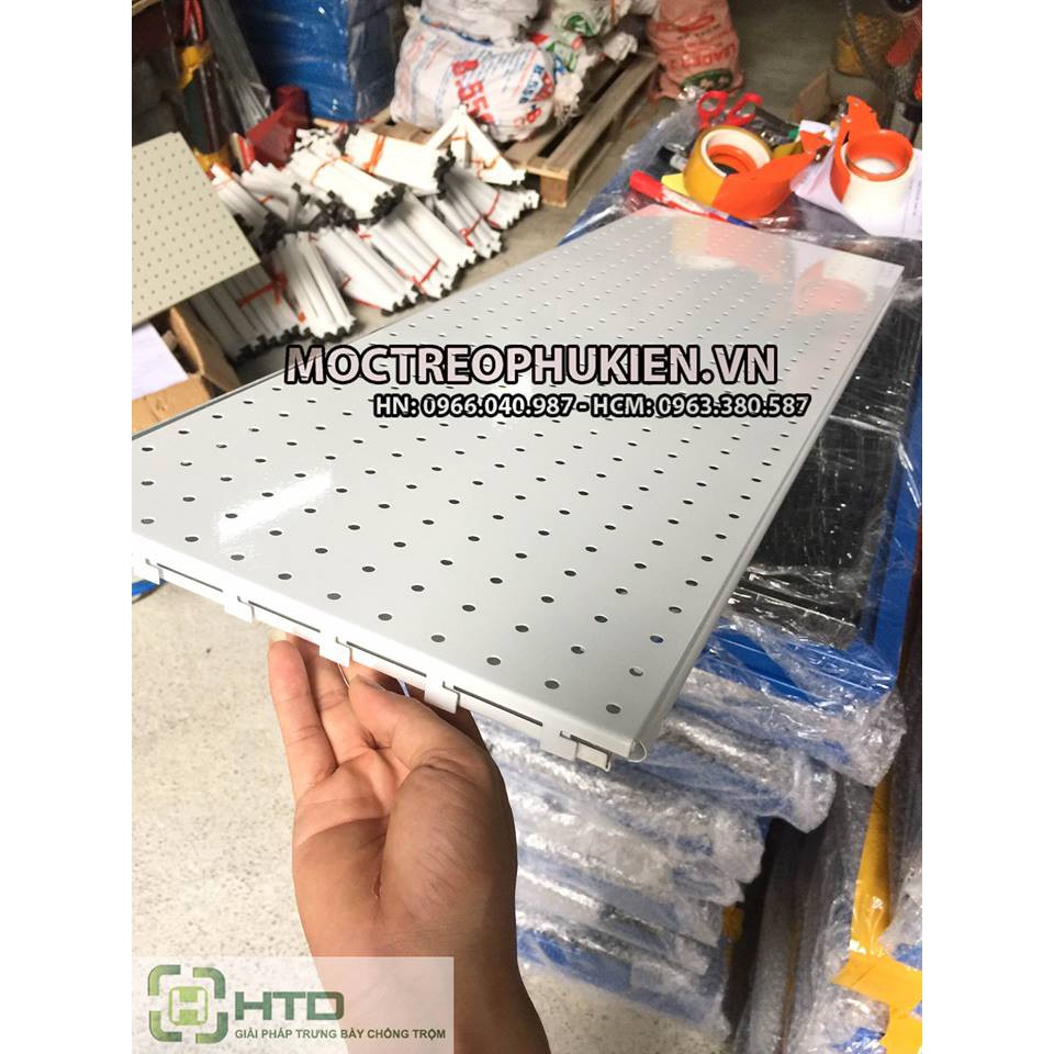 Tấm thép đột lỗ treo phụ kiện của HTD Việt Nam với giá cực kỳ ưu đãi cho khách hàngChất liêu: Thép sơn tĩnh điện cao cấp bền đẹp