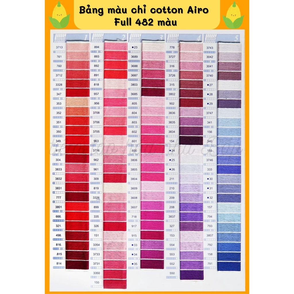 Giới thiệu Chỉ Thêu Airo Tép Lẻ Full 447 Màu + 35 Màu Mới - Chỉ Thêu Cotton Chính Hãng Không Phai Màu [INBOX CHỌN MÀU]