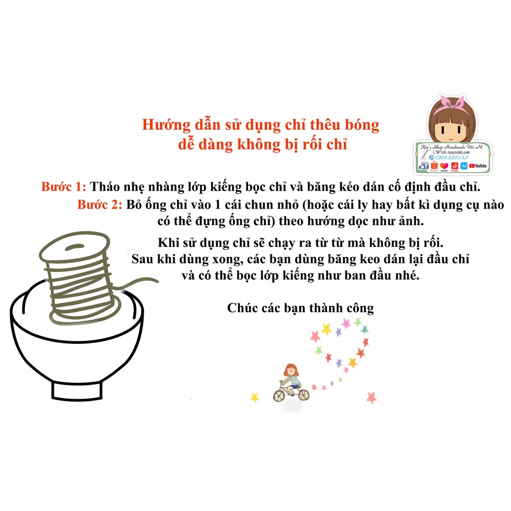 Giới thiệu Chỉ thêu bóng dùng để thêu các chi tiết như mắt, mũi, miệng doll, thêu hoa lá cành, dùng thêu tay hoặc thêu máy đều được