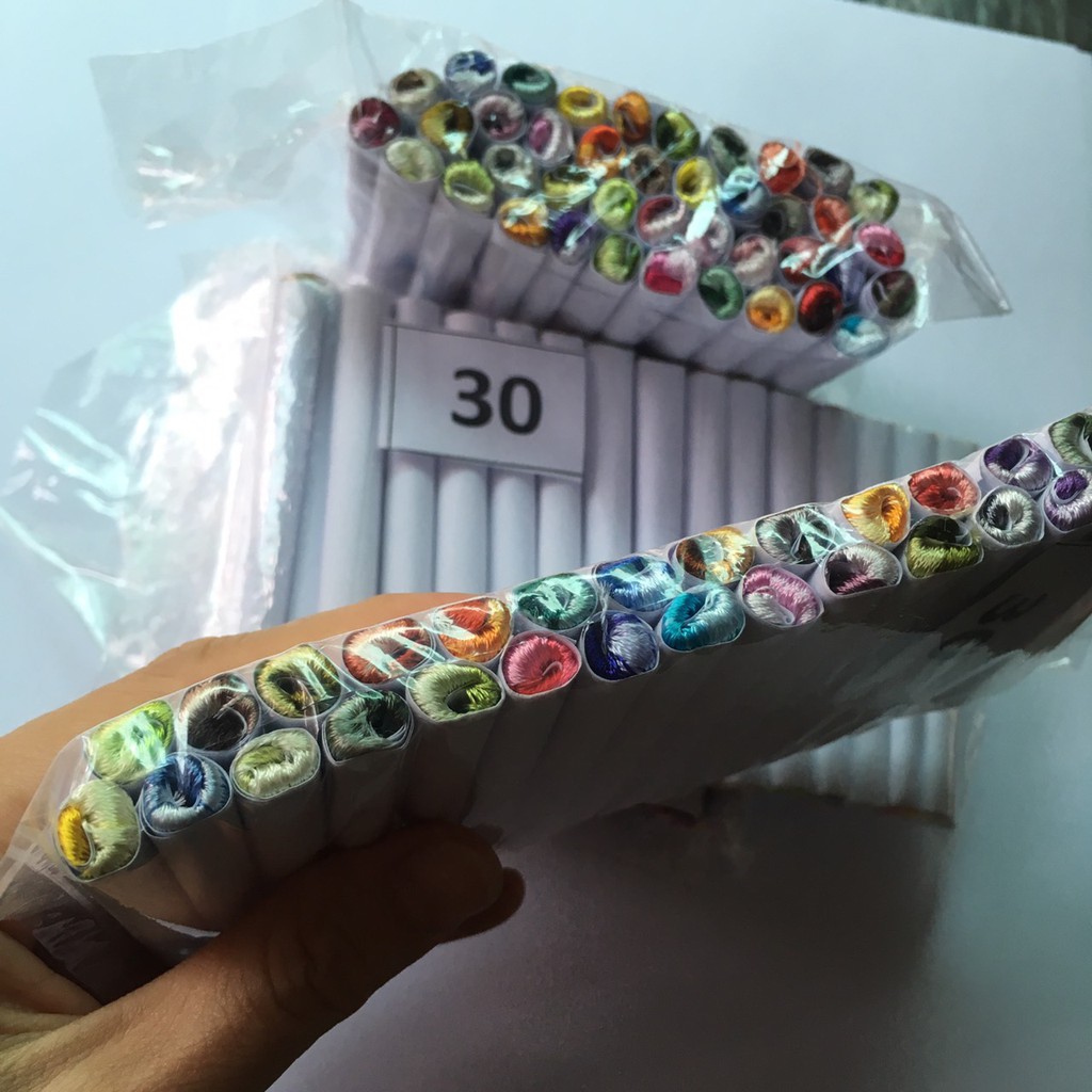 ĐÓNG GÓI QUẤN GIẤY TỪNG MÀU: Shop đóng gói theo tép có quấn giấy. Mỗi tép NHỎ gồm 8 đoạn (8 sợi cùng tone), mỗi đoạn khoảng 80-84cm, tức là tổng chiều dài khoảng 6.5 mét mỗi tép (mỗi tép nhỏ được gói trong 1 tờ giấy trắng cuộn tròn lại như hình điếu thuốc nhé!). Mỗi gói hàng gồm nhiều tép nhỏ với màu sắc khác nhau, gói càng nhiều tép thì càng nhiều màu (nhưng không có nghĩa là đủ màu bạn nha – Vì tùy đợt nhập hàng có màu nhiều màu ít). Màu trên hình chụp mang tính chất tượng trưng. Màu thực tế của gói hàng sẽ có đại đa số màu giống hình, và LOẠI QUẤN GIẤY SẼ GIAO MÀU NGẪU NHIÊN Ạ!. HÌNH CHỤP CÓ HÌNH BÀN TAY CẦM TÉP NHỎ VÀ TÉP TO CẠNH NHAU: Những gói đóng gói sẵn nhiều màu ngẫu nhiên là tép nhỏ. Hàng tặng thường là bobbin quấn chỉ hoặc dụng cụ xỏ chỉ.