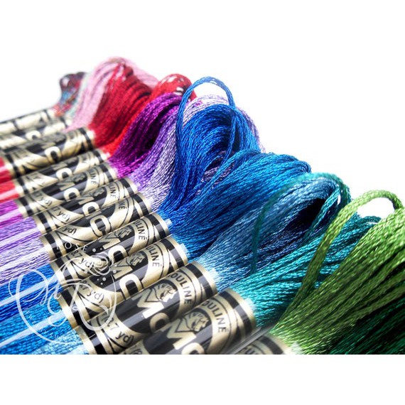 Chỉ thêu DMC Pháp (DMC’s Stranded Embroidery Floss), chỉ cotton 6 sợi: là loại chỉ sử dụng phổ biến nhất trong cross stitch. Loại này có đến 454 code màu khác nhau, cùng với 18 code chỉ loang (màu chỉ chuyển giảm dần từ từ và lập lại trên cả 1 đoạn chỉ dài). Với đặc tính 6 sợi size #25, tùy theo yêu cầu của mẫu, người thêu sẽ sử dụng 1, 2, 3…sợi để thêu. Ngoài ra họ còn có 1 dạng chỉ có màu sắc pha trộn nhiều gam màu khác nhau tạo nên 1 hiệu ứng riêng, bộ chỉ pha này gồm có 36 code khác nhau,hiện tại Linh Handmade có 1028 màu nên sẽ có trên 50 bảng màu mỗi bảng màu có 20 mã màu,các bạn có thể dùng từ khóa Chỉ Thêu DMC Pháp (bảng màu n ) trong đó chữ "n" thay thể bằng số thứ tự từ 1-60 nhéXuất xứ : Pháp