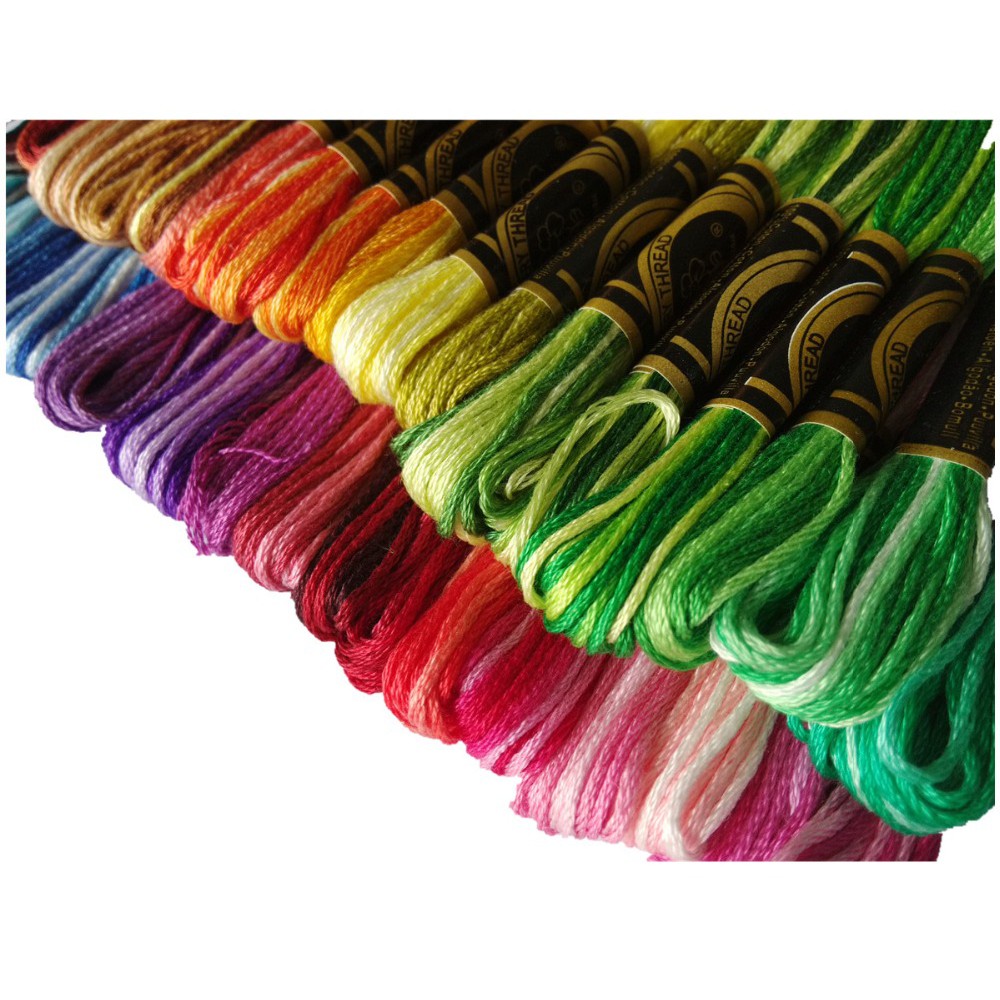 Chỉ thêu DMC Pháp (DMC’s Stranded Embroidery Floss), chỉ cotton 6 sợi: là loại chỉ sử dụng phổ biến nhất trong cross stitch. Loại này có đến 454 code màu khác nhau, cùng với 18 code chỉ loang (màu chỉ chuyển giảm dần từ từ và lập lại trên cả 1 đoạn chỉ dài). Với đặc tính 6 sợi size #25, tùy theo yêu cầu của mẫu, người thêu sẽ sử dụng 1, 2, 3…sợi để thêu. Ngoài ra họ còn có 1 dạng chỉ có màu sắc pha trộn nhiều gam màu khác nhau tạo nên 1 hiệu ứng riêng, bộ chỉ pha này gồm có 36 code khác nhau,hiện tại Linh Handmade có 1028 màu nên sẽ có trên 50 bảng màu mỗi bảng màu có 20 mã màu,các bạn có thể dùng từ khóa Chỉ Thêu DMC Pháp (bảng màu n ) trong đó chữ "n" thay thể bằng số thứ tự từ 1-60 nhéXuất xứ : Pháp
