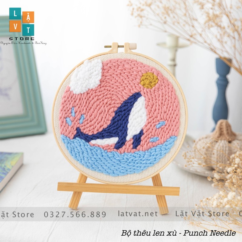 Giới thiệu Bộ Thêu Len Xù Cá Voi Xanh DIY Punch Needle Whale, có hướng dẫn