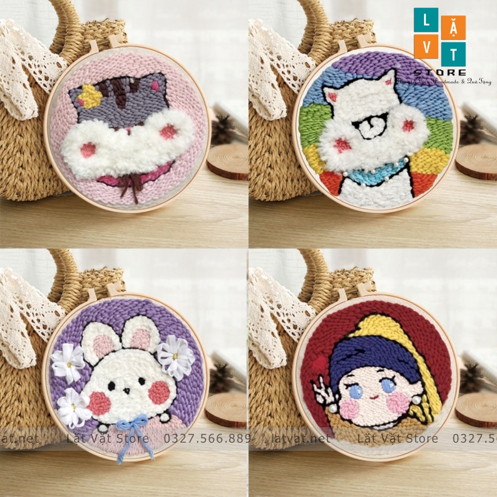 Sở thích & Sưu tầm > Dụng Cụ May Vá || Bộ Thêu Len Xù, len nổi Thú Cưng Đáng Yêu - Punch Needle DIYS - tranh từ len trang trí nhà cửa, decorCòn hàng