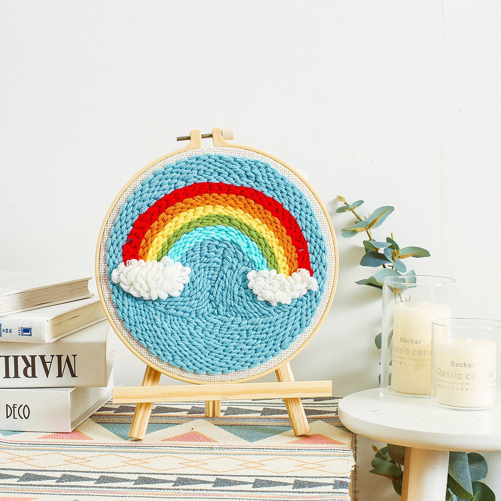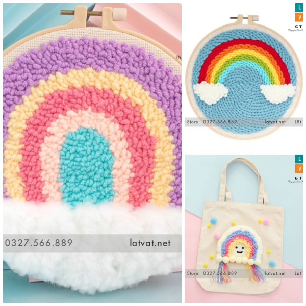 Bộ Thêu Len Xù Trang Trí Decor Bảy Sắc Cầu Vồng - Punch Needle - Có Video hướng dẫn cơ bản
