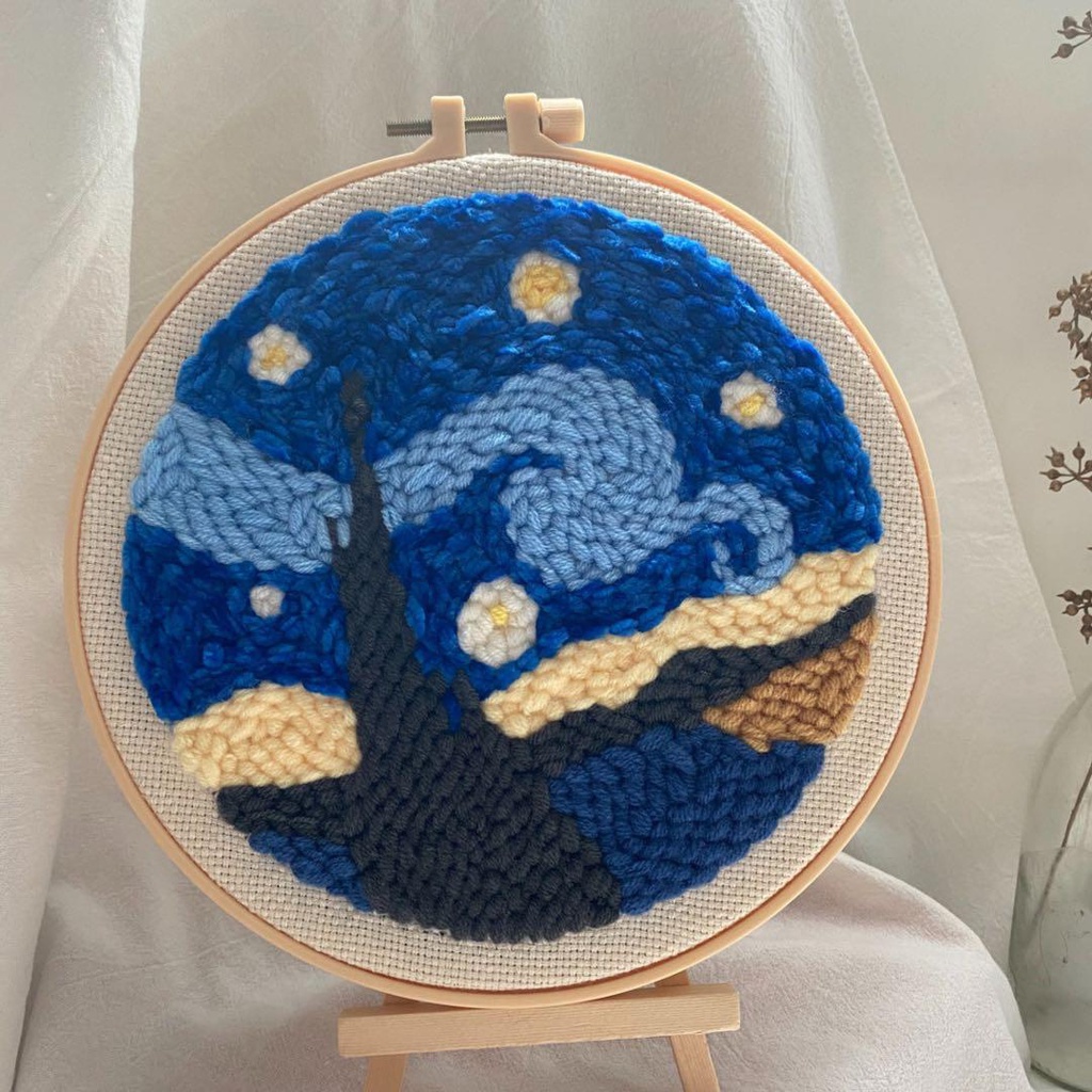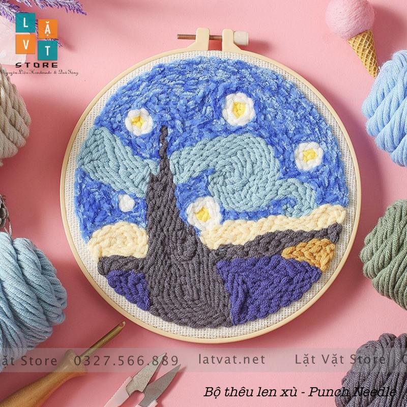 Bộ Thêu Len Xù Van Gogh Starry Night Sky - Trời Đêm - Punch Needle Decor có hướng dẫn, thêu len nổi