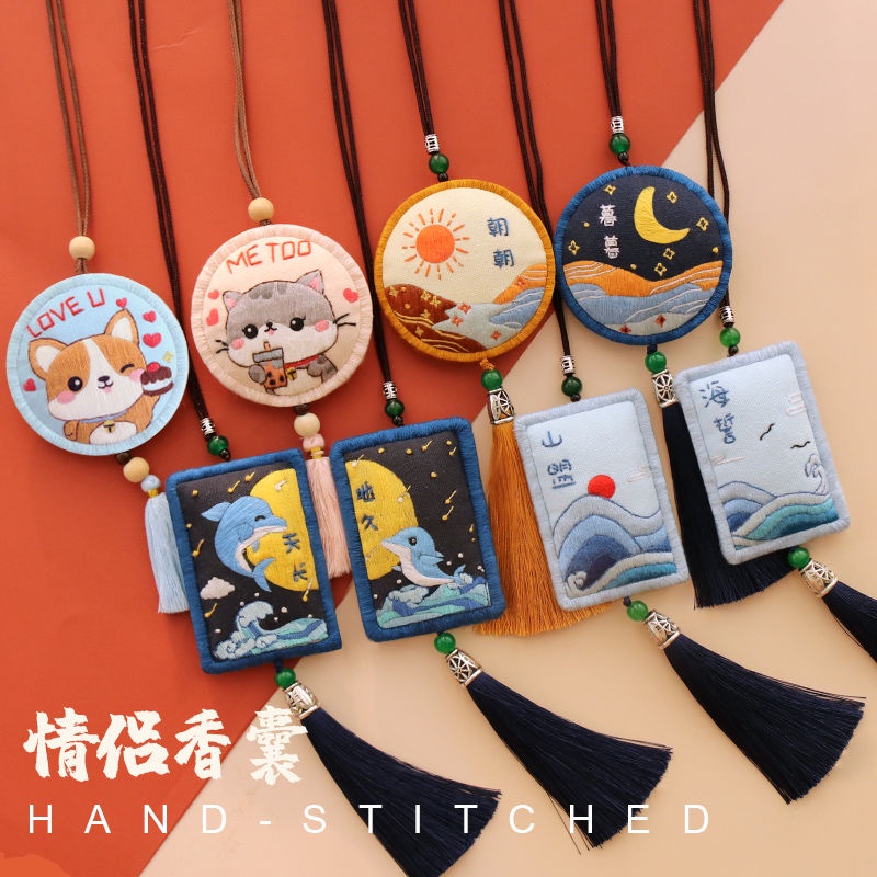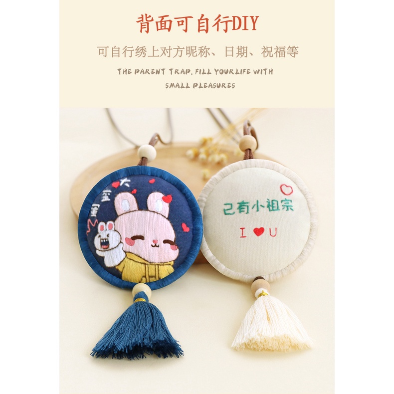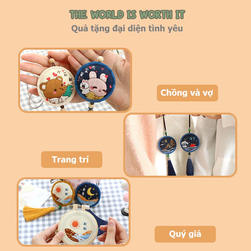 Bộ đồ thêu tay mặt dây chuyền tự làm hình tròn/ Vuông thủ công/Quà tặng đại diện tình yêu