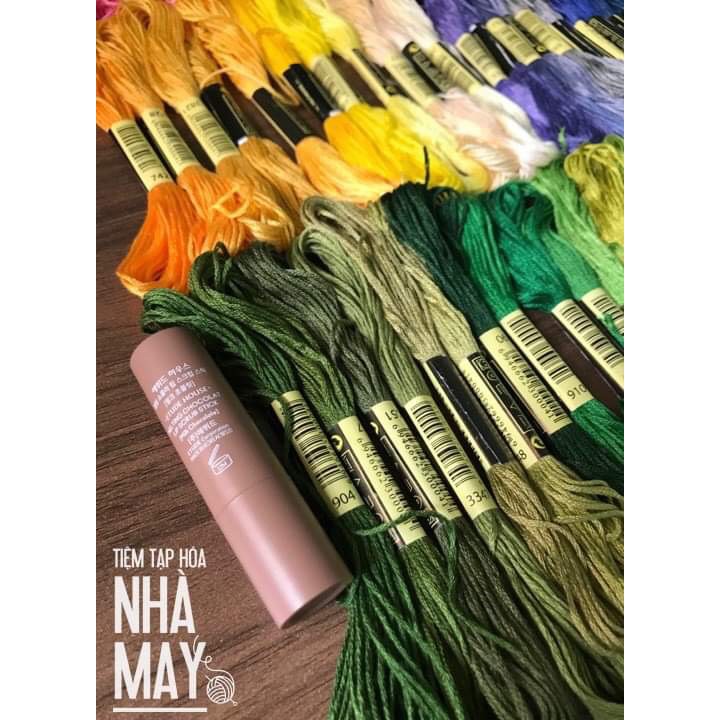 Chỉ thêu cotton màu chuẩn theo mã DMC. Sợi chỉ dai, không phai, chỉ gồm 6 sợi chỉ nhỏ có thể rút ra khi thêu Loại chỉ cotton thường: sợi dai, không phai nhưng sợi chỉ xù! Phù hợp cho các bạn mới tập mà còn lo lắng thêu sai, tiếc chỉ! Chỉ này phù hợp thêu túi ví, các loại phụ kiện, trang vẽ, khăn trải bàn... những vật dụng mà bạn không thường xuyên giặt giũ