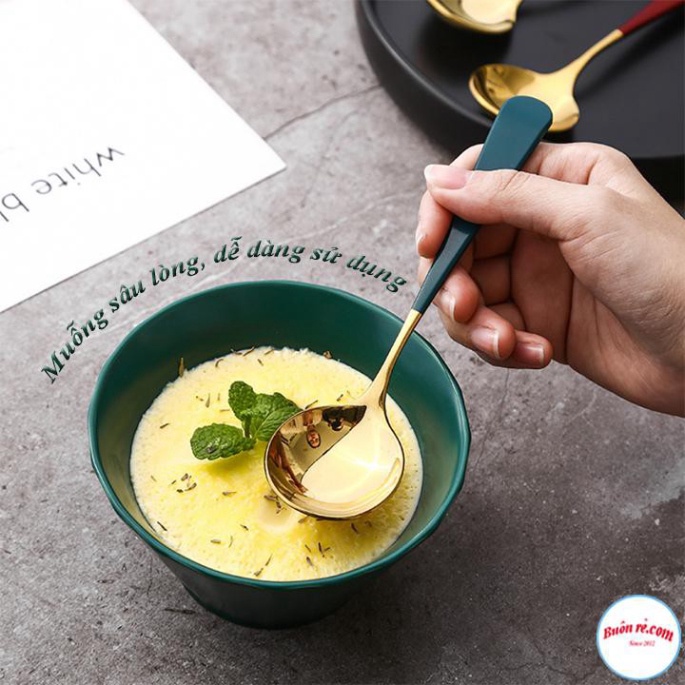 ✔️ Thìa Inox Mạ Vàng Cán Dài Nhiều Màu Với thiết kế tròn, rộng phù hợp khuôn miệng, dễ dàng xúc cơm, soup, cháo...