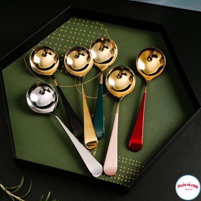 ✔️ Thìa Inox Mạ Vàng Cán Dài Nhiều Màu Với thiết kế tròn, rộng phù hợp khuôn miệng, dễ dàng xúc cơm, soup, cháo...